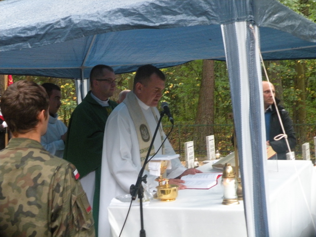 w intencji poległych żołnierzy w czasie II Wojny Światowej. Mszę Św. sprawował Ks. Rudolf Karaś Proboszcz Parafii pw.Nawiedzenia NMP w Bidaczowie oraz Kapelan Jednostki Wojskowej w Nisku Ks.mjr Szczepan Madoń. W uroczystościach udział wzięła również Kompania Reprezentacyjna Jednostki Wojskowej w Nisku ,delegacja Jednostki Strzeleckiej 2046 im.gen.Stefana "Grota" Roweckiego z Biłgoraja,Poczty Sztandarowe Jednostek OSP z terenu Gminy Harasiuki oraz Orkiestra Dęta z Potoka Górnego, ponadto obecni byli mieszkańcy okolicznych miejscowości oraz zaproszeni goście w osobach: mjr Bogusław Sempruch Komendant Garnizonu w Nisku, mjr Krzysztof Jasiński Przedstawiciel WKU w Nisku, Podinspektor Janusz Śnios Zastępca Komendanta Powiatowego Policji w Nisku, Jan Połeć W-ce Przewodniczący Rady Powiatu w Nisku, Dariusz Łebko Przewodniczacy Rady Gminy w Harasiukach, Gabriel Waliłko Prezes Zarządu Odziału Powiatowego Związku Ochotniczych Straży Pożarnych RP w Nisku, Henryk Bździuch Wójt Gminy Harasiuki.
