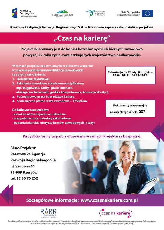 Nabór do projektu „Czas na Karierę” Opublikowano: 29 marca 2017 08:31 Kategoria: Aktualności Wydrukuj Zdjęcia: Wyświetleń: 1369 Zobacz równieżPŁATNOŚCI BEZPOŚREDNIE W ROKU 2017List Prezesa KRUS do rolników OFERTA WSPARCIA FINANSOWEGO PRZEDSIĘBIORCÓW I...Nabór do projektu „Czas na Karierę” Ostatnie wolne miejsca - bezpłatne kursy...Wystawa "Czar Starej Fotografii"