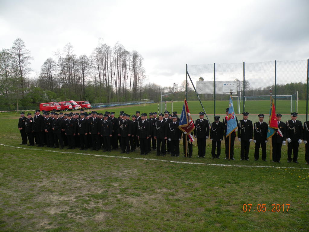 Raport o gotowości pododdziałów do uroczystości złożył dh Sławomir PINTAL – naczelnik Ochotniczej Straży Pożarnej w Hucisku a meldunek przyjął Prezes Zarządu Oddziału Powiatowego Związku OSP RP w Nisku dh Gabriel WALIŁKO.