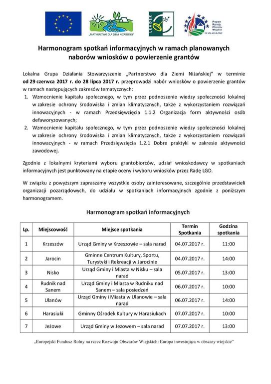 Harmonogram spotkań informacyjnych w ramach planowanych naborów wniosków o powierzenie grantów