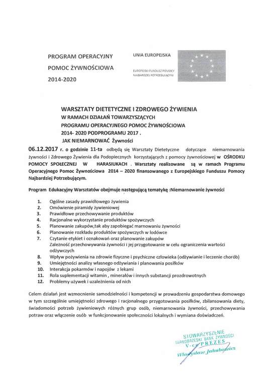 Zaproszenie na warsztaty "Niemarnowania żywności i zdrowego odżywiania"