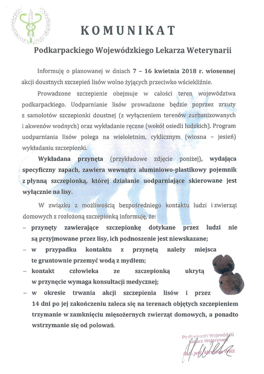Komunikat Podkarpackiego Wojewódzkiego Lekarza Weterynarii