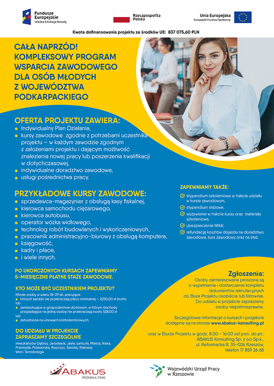 Nabór do projektu stażowo-szkoleniowego „Cała naprzód! Kompleksowy program wsparcia zawodowego dla osób młodych z województwa podkarpackiego”