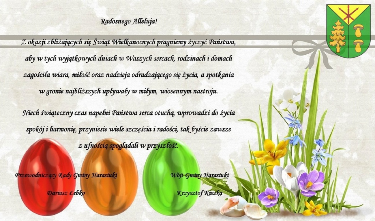 Wesołych Świąt Opublikowano: 07 kwietnia 2020 09:38 Kategoria: Aktualności Wydrukuj Wyświetleń: 596 Zobacz również ZAPROSZENIE NA XIX SESJĘ RADY GMINY HARASIUKI I...Wydawanie żywności Realizacja programu „Zdalna Szkoła” przez Gminę...Wesołych Świąt ZAPROSZENIE NA XVIII SESJĘ RADY GMINY W... Ogłoszenie - „Rozwój mikroinstalacji OZE na...