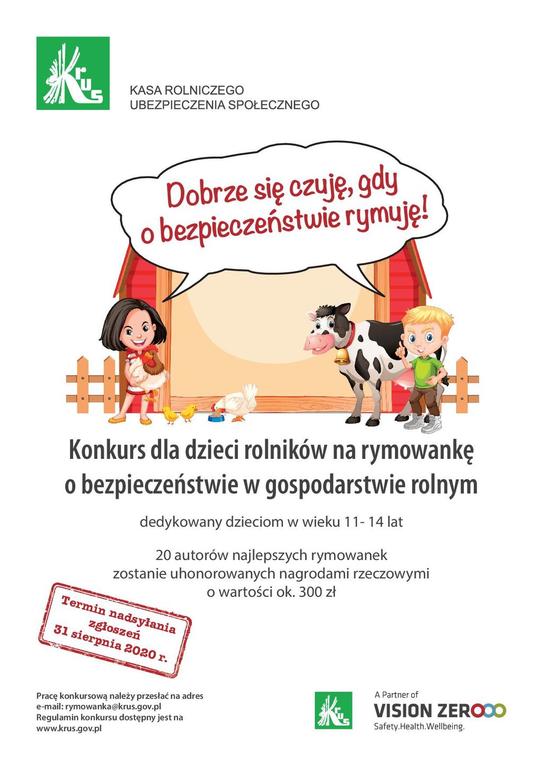 Konkurs dla dzieci rolników na rymowankę o bezpieczeństwie w gospodarstwie rolnym