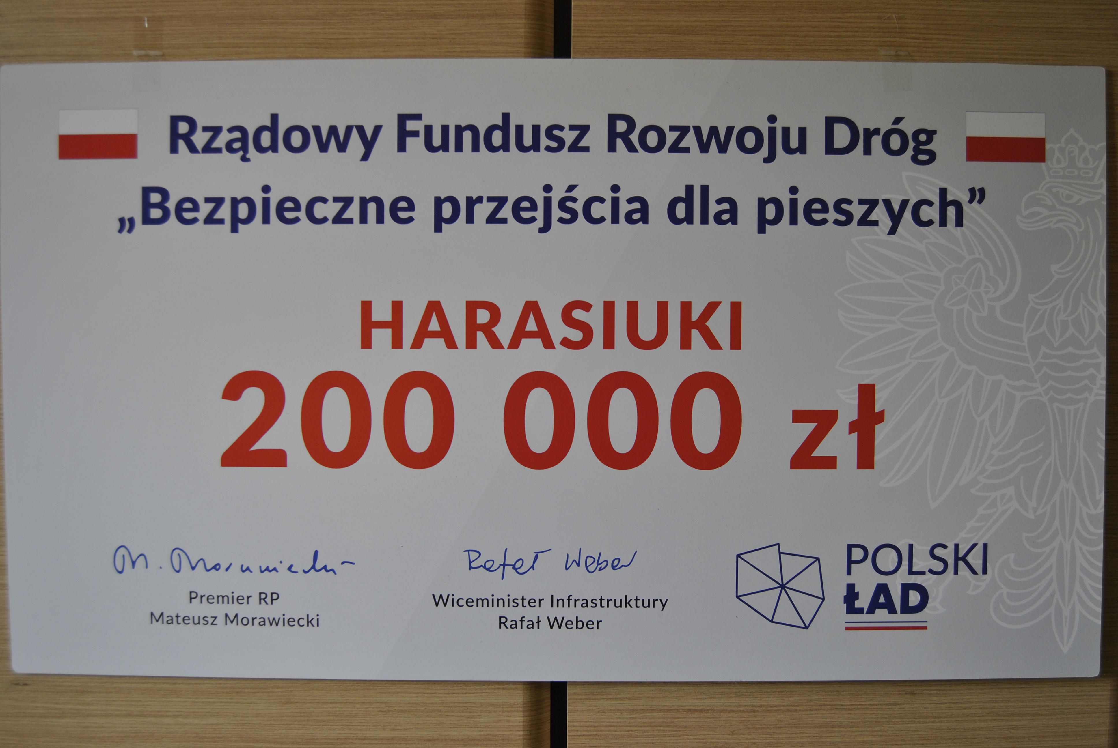 Wartość podpisanej umowy to kwota 330 193,50 zł. Na realizację zadania pozyskano dofinansowanie w kwocie 200 000 z Rządowego Funduszu Rozwoju Dróg – Bezpieczne przejścia dla pieszych.