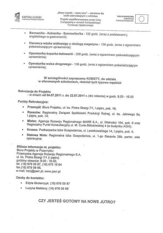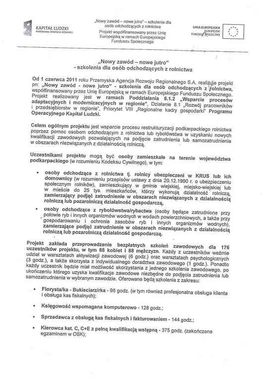 Nowy zawód - nowe jutro - szkolenie dla osób odchodzących z rolnictwa