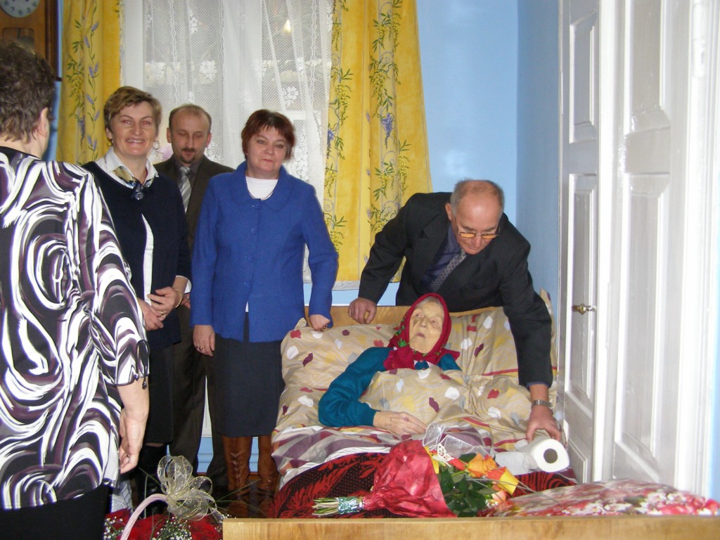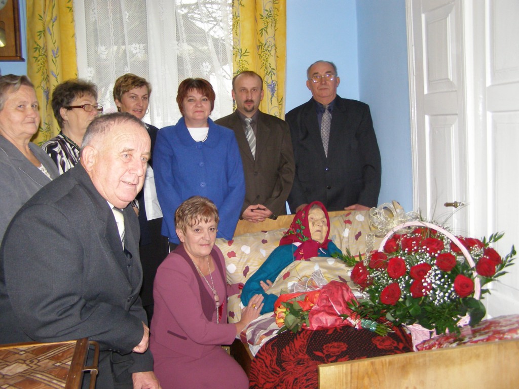 W uroczystości urodzinowej udział wzięli: Pan Gabriel Waliłko – Starosta Powiatu Niżańskiego, Wójt Gminy Harasiuki – Henryk Bździuch, Przewodniczący Rady Gminy Harasiuki – Dariusz Łebko, Przedstawiciel Kasy Rolniczego Ubezpieczenia Społecznego – Anna Aluk, Kierownik USC Harasiuki – Grażyna Flis, księża Parafii Huta Krzeszowska – ks. dr. Krzysztof Koprowski i ks. Mariusz Pastuszak, najbliższa rodzina jubilatki oraz sąsiedzi.