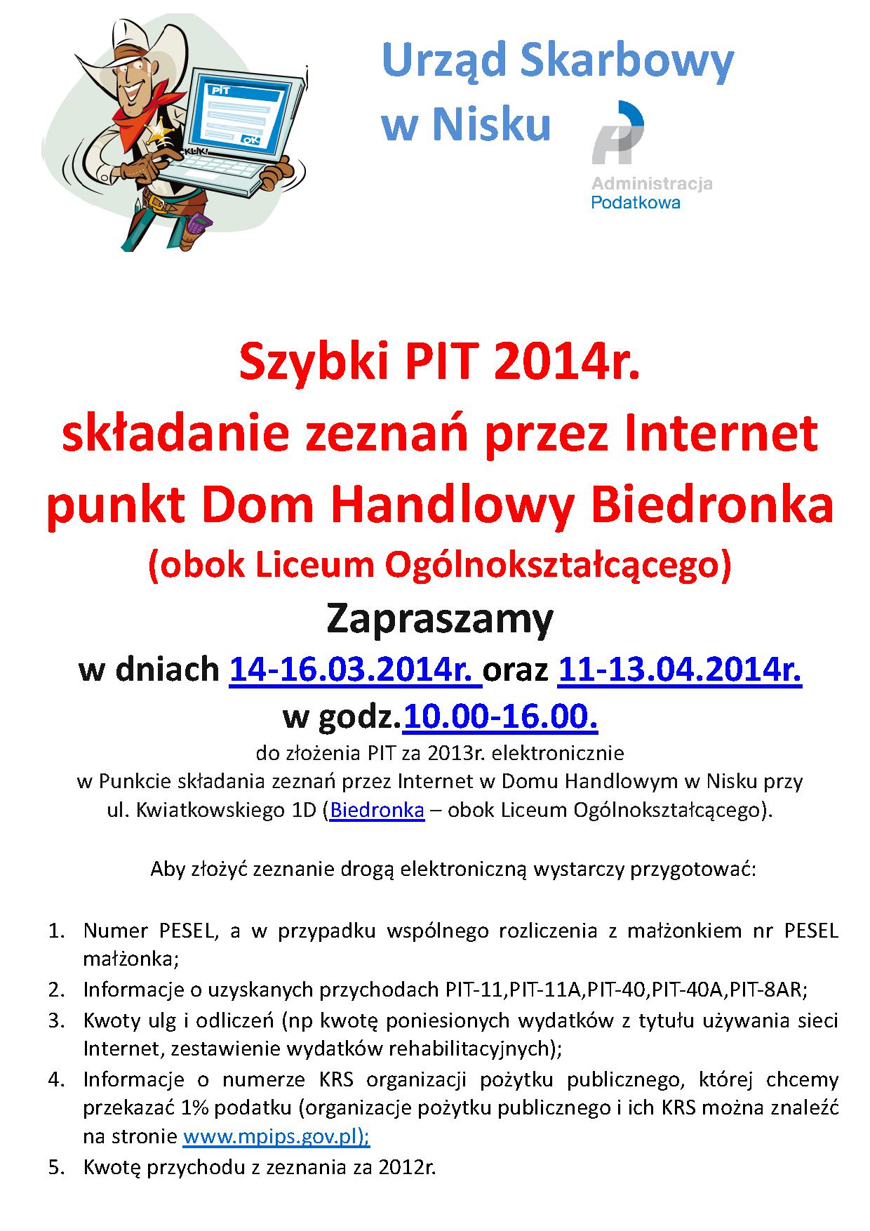 Szybki PIT 2014r. - składanie zeznań przez Internet