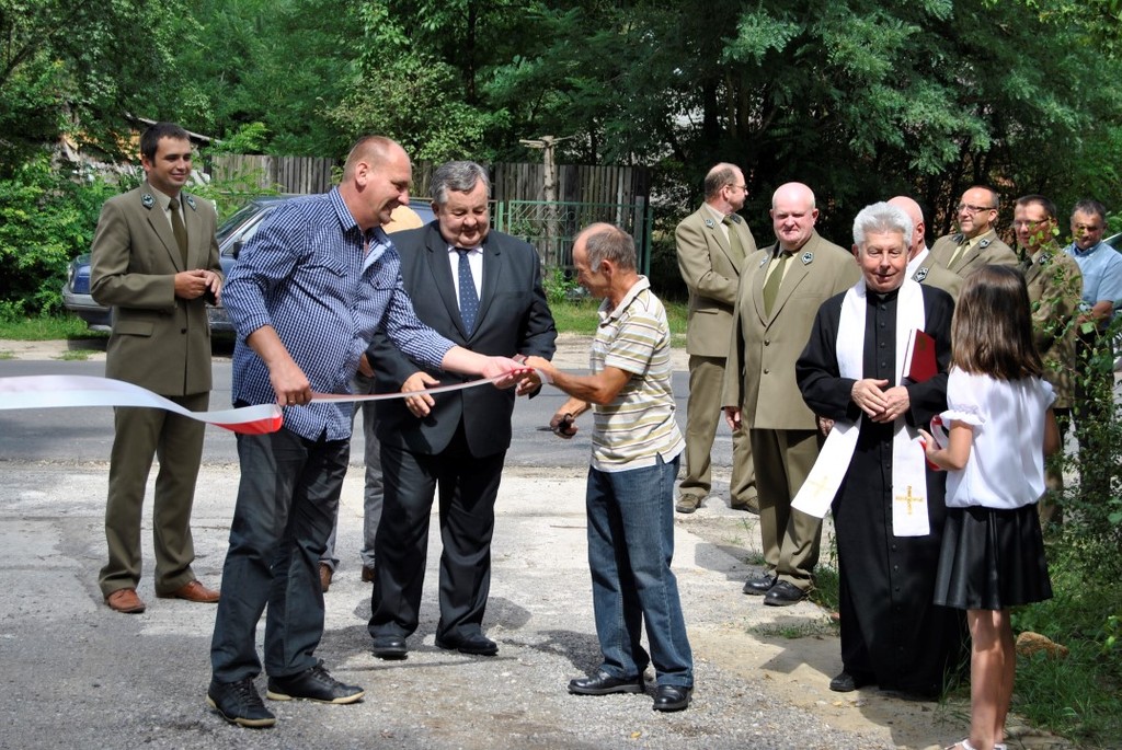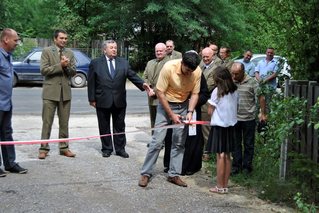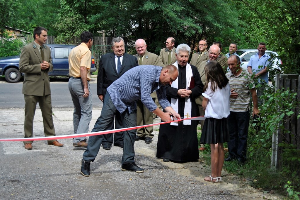 W otwarciu udział wzięli: Wójt Gminy Harasiuki – Henryk Bździuch, Nadleśniczy Nadleśnictwa Biłgoraj – Marian Kudełka, Przedstawiciel Starosty Niżańskiego – Naczelnik Wydziału Ochrony Środowiska, Leśnictwa i Rolnictwa – Krzysztof Zalewski, Sekretarz Nadleśnictwa Biłgoraj – Piotr Piekarczyk, Inspektor Nadzoru – Lucjan Bednarz, Leśniczy Leśnictwa Potok – Stanisław Ciosmak wraz z Podleśniczym - Leszkiem Bożkiem, Leśniczy ds. Lasów Niepaństwowych - Paweł Dec oraz wykonawca – Dariusz Siek oraz sołtys wsi Kusze – Stanisław Harasiuk. Poświęcenia jak również otwarcia dokonał Proboszcz Parafii p. w. NMP Królowej Polski w Hucisku – Jan Chmiel. Symbolicznego przecięcia wstęgi dokonali w kolejności jak wyżej.