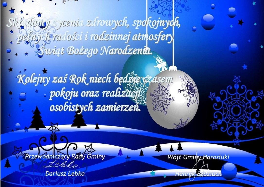 Wesołych Świąt Opublikowano: 17 grudnia 2014 12:24 Kategoria: Aktualności Wydrukuj Wyświetleń: 1342 Zobacz również INFORMACJA o zakończeniu realizacji projektu pn.... Spotkanie choinkowe uczestniczek projektu „Czas... Rozporządzenie Wojewody Podkarpackiego w sprawie...Wesołych Świąt ZAPROSZENIE NA III SESJĘ RADY GMINY W HARASIUKACH...Ogłoszenie o dniu wolnym