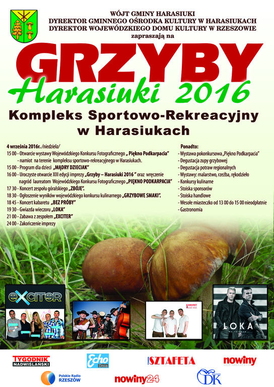 Grzyby Harasiuki 2016 Opublikowano: 18 sierpnia 2016 10:06 Kategoria: Aktualności Wydrukuj Wyświetleń: 19862 Zobacz równieżDożynki Wojewódzkie w PolańczykuDożynki Powiatu Niżańskiego Państwowa Inspekcja Pracy włącza się do działań...Grzyby Harasiuki 2016ZGRAJMY SIE ZARZĄDZENIE Nr 44/2016 WÓJTA GMINY HARASIUKI z...